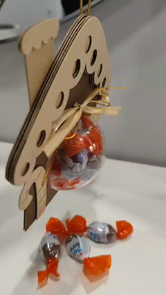 Popierinė kalėdinė dekoracija su vieta dovanėlei ar saldainiams (17x15 cm, burbulas Ø 7 cm)